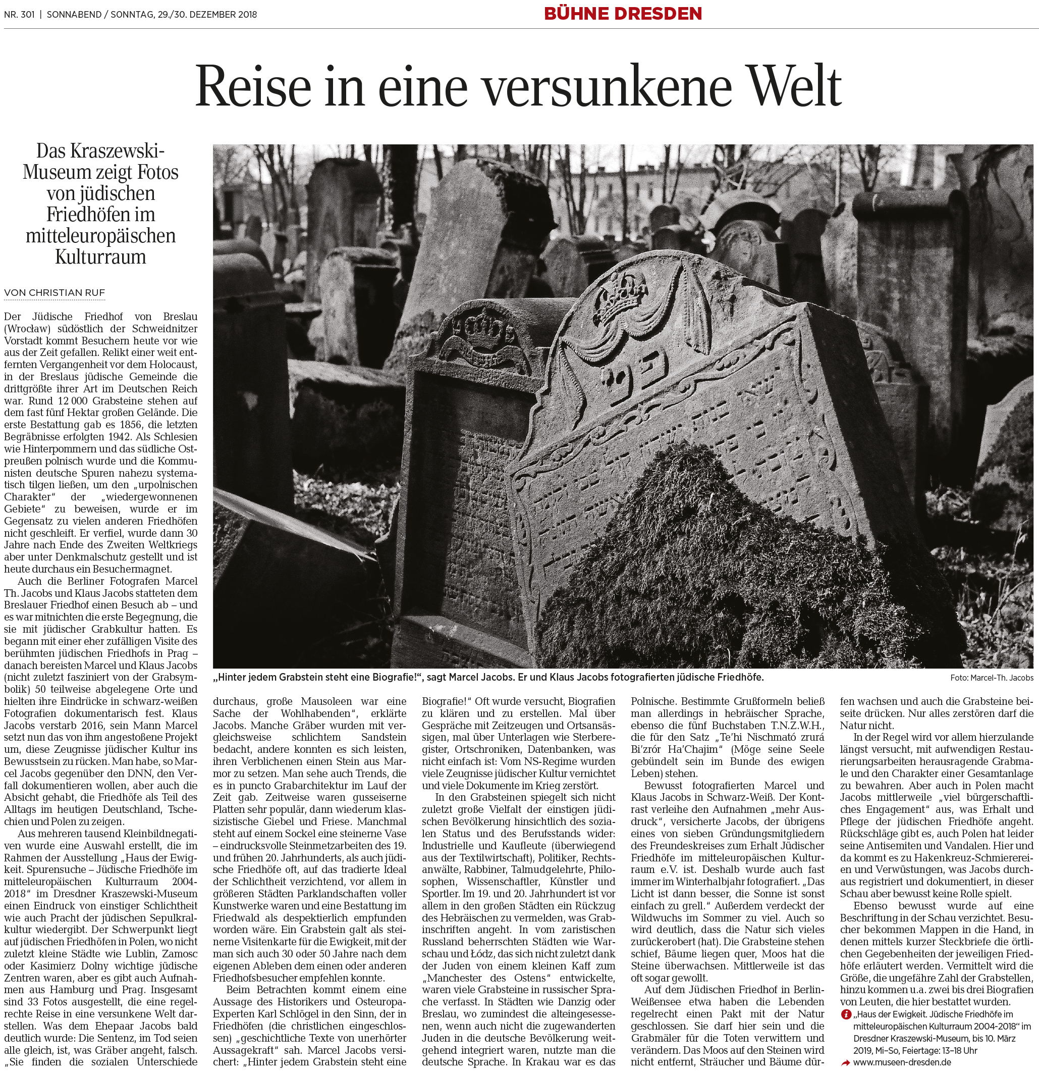 Artikel "DNN" von Christian Ruf 29.12./30.12.2018 Nr. 301