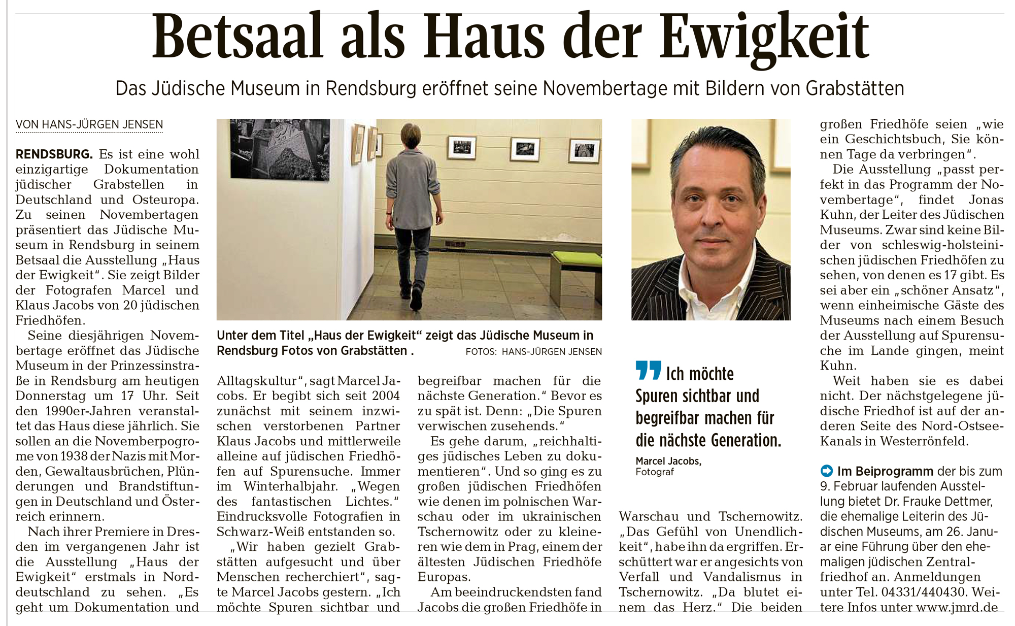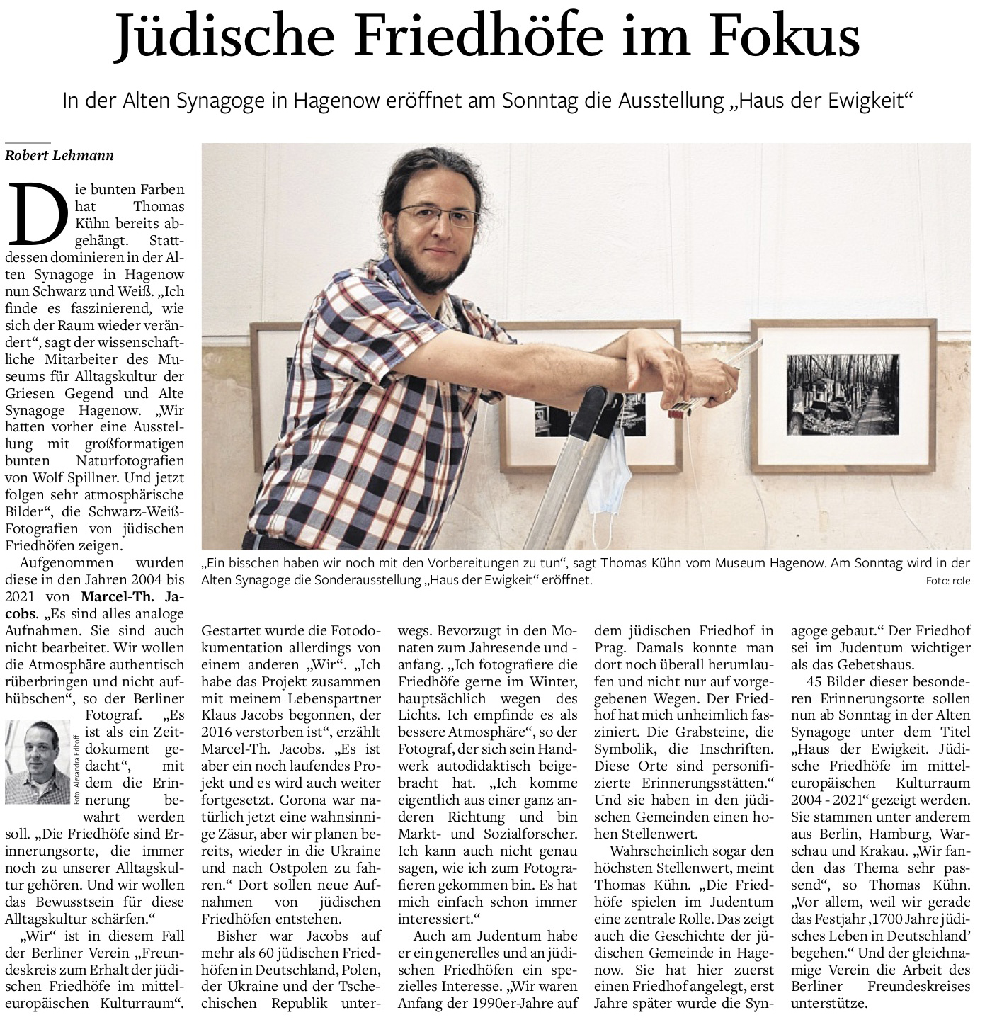 Diese besondere Mischung ist auch dem Museums-Team der Alten Synagoge im mecklenburgischen Hagenow aufgefallen, erzählt Thomas Kühn, wissenschaftlicher Mitarbeiter und Kurator der dortigen Ausstellung. „Die Herangehensweise von Herrn Jacobs und seinem Verein hat uns begeistert, hat uns fasziniert, weil er mit einem dokumentarischen Ansatz an die Thematik herangeht, die Fotos trotzdem nicht einer gewissen Ästhetik entbehren. Und diese Verbindung von Dokumentation und analoger Fotografie hat uns überzeugt.“ so Thomas Kühn weiter.