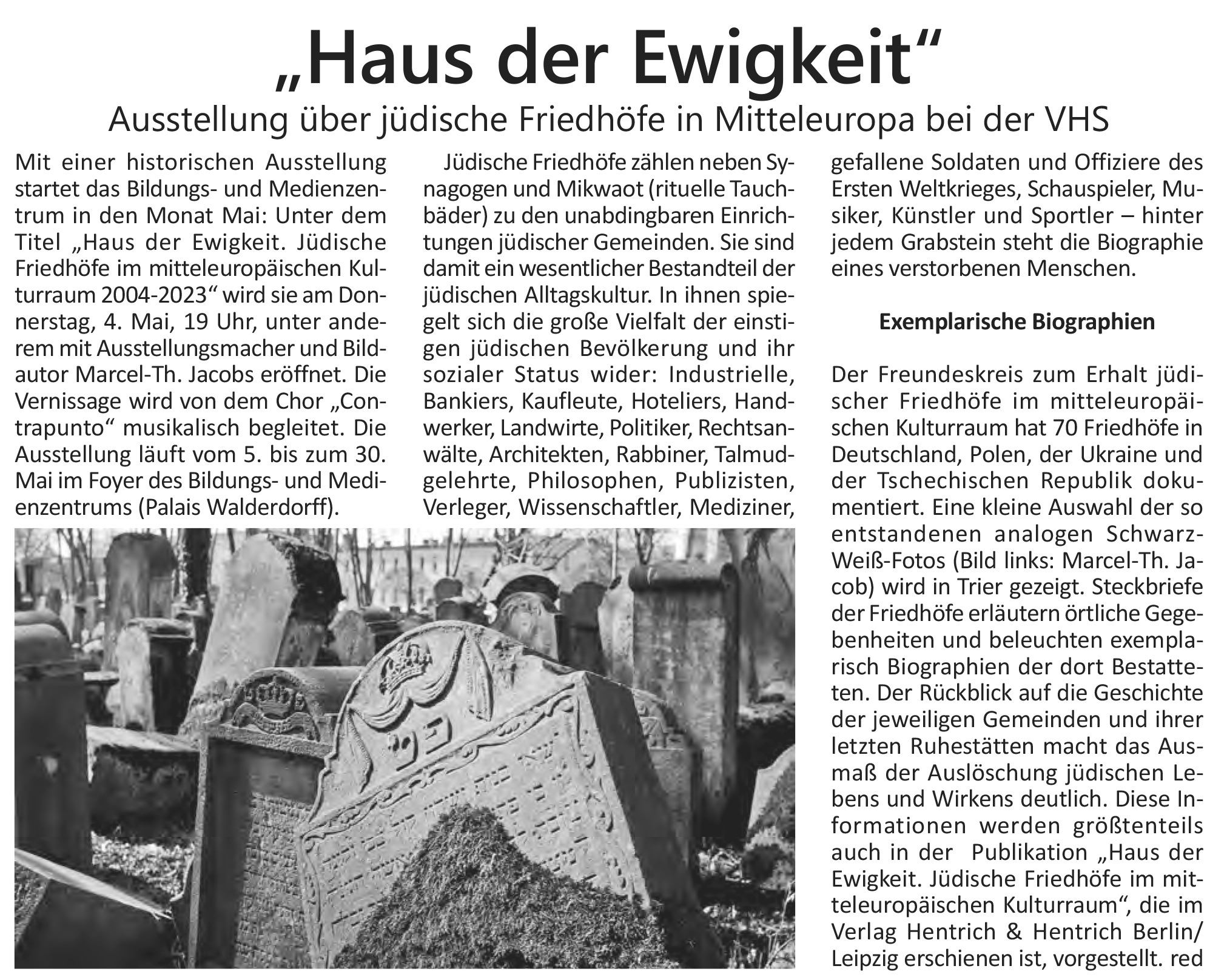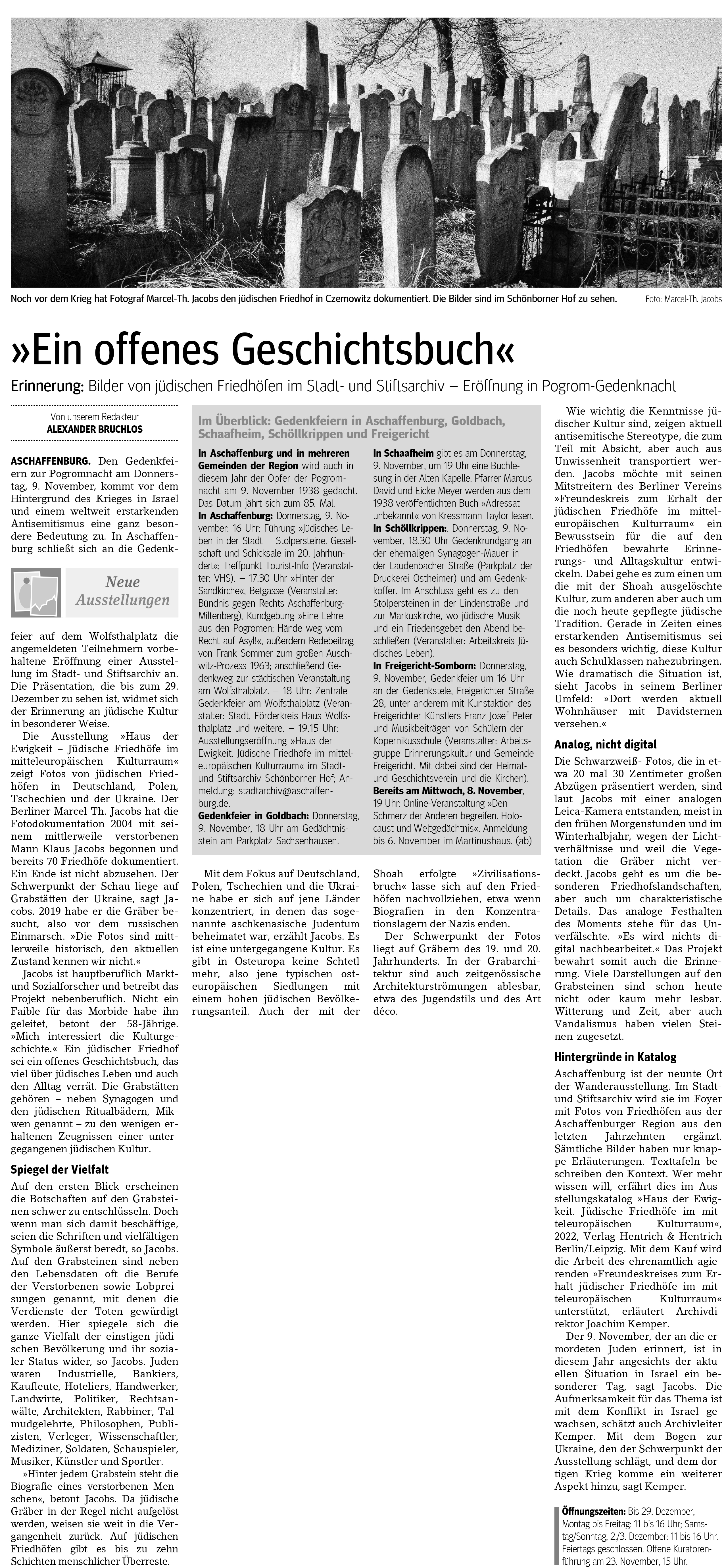 Bilder, die Steine sprechen lassen Fotoausstellung des Berliner Fotografen Marcel Th. Jacobs über jüdische Friedhöfe